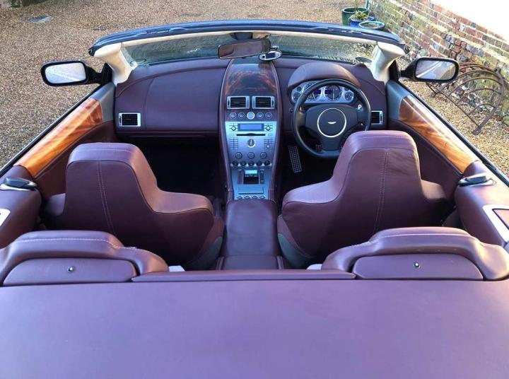2005 Aston Martin DB9 Volante finished in Meteorite Silver with Iron Ore hide interior and Mahogany veneered door cappings and centre console. This beautifully kept, one owner example has been sparingly used over the 20 years having covered only 36,000 miles and has always been garaged from new. It has a meticulously recorded service history with 18 services stamps, 9 of which are from Aston Martin main agents and a further 9 services with well-respected Aston Martin Specialists. In the past 2 years alone, it has had the benefit of a brake overhaul, new fuel pumps and a new battery. The standard DB9 specification includes Climate Control, Satellite Navigation, electrically adjustable heated seats with lumbar support and anti-skid control. This car was also ordered with Touchtronic transmission, a Dolby 950-watt Linn Hifi system, cruise control, leather clad steering wheel, heated front screen, bright finish front Grille and 19" alloys with light grey brake calipers. On viewing this car, it immediately becomes apparent from its condition and its exemplary service history that it has been very well cared for in the correct manner. Sensibly priced for one in this condition at £31,950