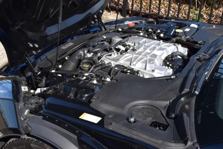 This is not just any F-Type! The original 5.0 liter V8 version already has a considerable amount of horsepower as standard, but in the Project 7 this was increased to 575 bhp. The roof was completely omitted and the windshield was lowered with 30 mm. Behind the driver, the distinctive “D-Type” hump was added and the front bumper, spoiler, diffuser and rims were modified. SVO developed a custom tuning for the 8-speed quickshift transmission and the electronic active diff, enabling acceleration from 0-60 mph in 3.9 seconds. The top speed is limited to 300 km/h . The aluminum body weighs 80 kg less than the standard F-Type and the tailgate, bonnet, louvres, power vents in the front wings and mirror caps are made of carbon.