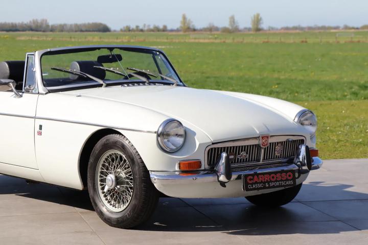 De MG B: een populaire sportauto zoals hij hoort te zijn: lichtgewicht, wendbaar en een genot om mee te rijden. Deze Roadster betreft een zeer fraai en fris exemplaar die mooi is uitgevoerd in Old English White met een zwart lederen interieur, originele chroombumpers en spaakwielen met een klassieke uitstraling. Hij is geproduceerd in 1972 en is nieuw geleverd in de Verenigde Staten (zoals het merendeel). De auto is hierdoor roestvrij gebleven. In 1996 is de auto geïmporteerd naar Nederland, waar hij is gekoesterd door liefhebbers. De laatste eigenaar heeft de auto veelal gebruikt voor tourritten.