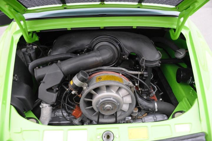 This accident-free Porsche 911 2.7 Targa, first delivered in Rome, Italy, was rebuilt in our workshop to new condition and painted in the original delivery color yellow-green N8.