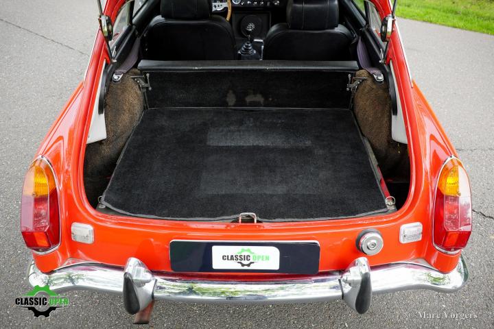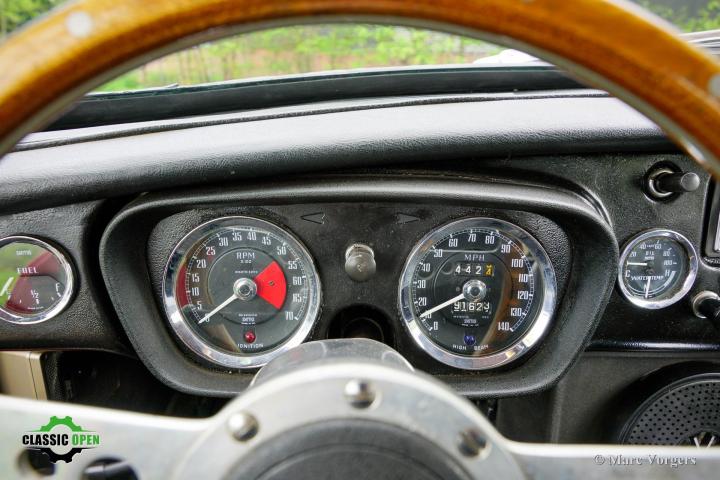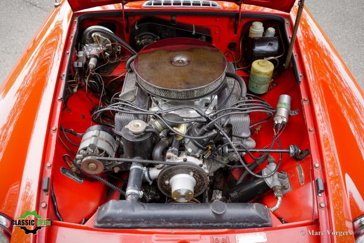 De eerste vier jaar van deze MG MGB GT V8 blijven een mysterie, maar vanaf de eerste registratie in mei 1975 is de geschiedenis rotsvast. Feit is dat deze MGB GT een zeer goede linksgestuurde V8-conversie is met een begeerlijke en sterke 180 SAE pk (161 DIN pk) hoge compressie Rover 3500 V8, uitgerust met een viercilinder Edelbrock carburateur die het vermogen nog verder doet toenemen! De motorkap met ‘power bulges’ is van een zescilinder MGC, en de ‘bolt-on’ Revolution-wielen zijn originele vintage velgen met 185-70-14 Dunlop-banden.
