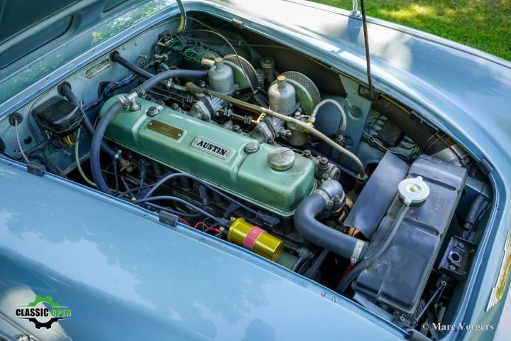 Om de auto een sportievere uitstraling te geven, werd de voorbumper verwijderd. Aan de voorzijde werden extra Lucas SLR700 “flame Thrower”-vérstralers geplaatst en de originele wielen werden vervangen door fraaie robuuste MiniLite-lichtmetalen velgen met Michelin XVS-banden. Dit is een prachtige en subliem rijdende klassieke Austin Healey.