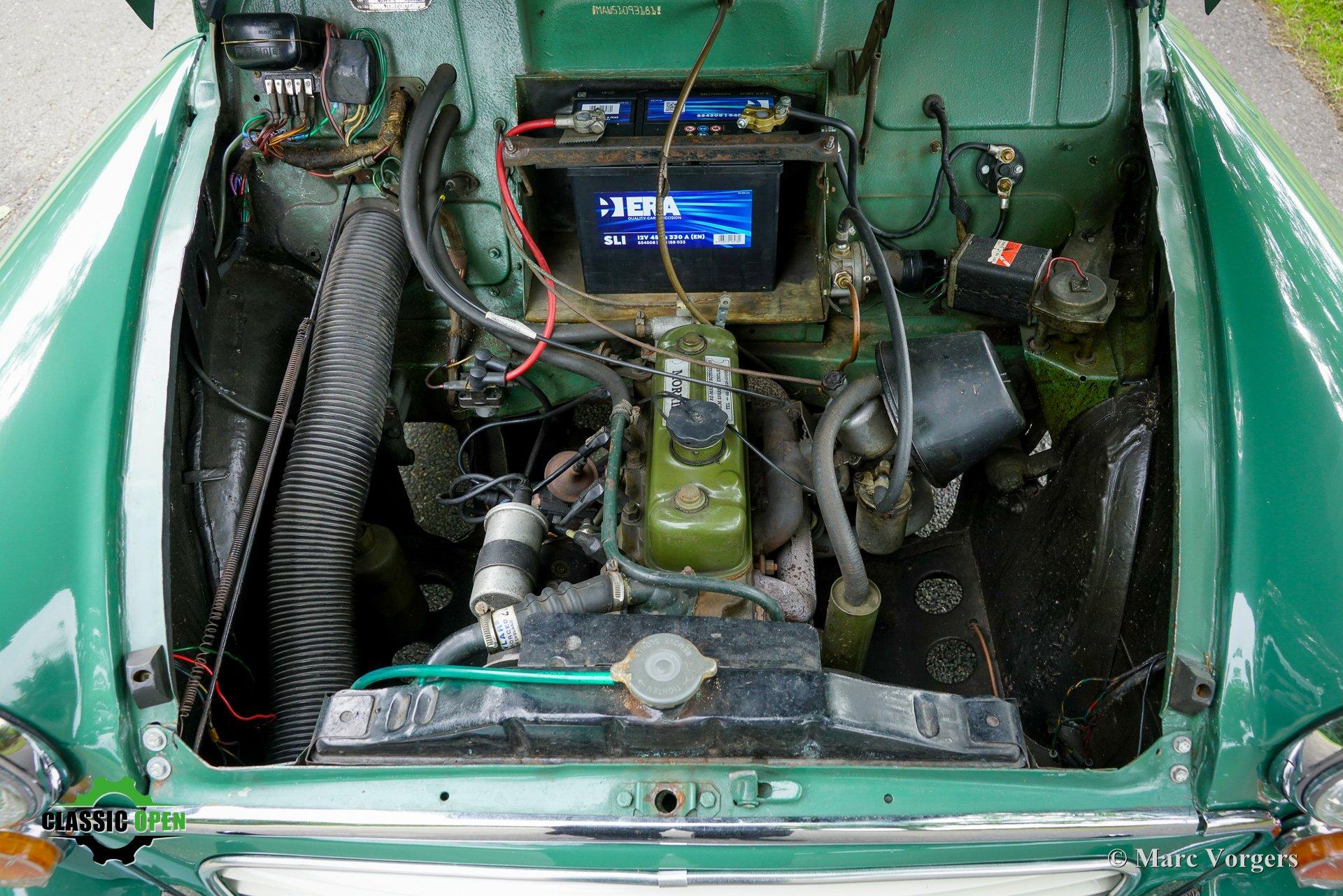 De vertrouwde 1.098 cc-motor, uitgerust met een enkele SU-carburateur en elektronische ontsteking, loopt zeer goed en de vierversnellingsbak schakelt zoals het hoort. Deze prachtige Morris Minor Traveller combineert praktische verfijningen met een authentiek karakter uit de jaren 1960 en wordt aangeboden met volledige documentatie.