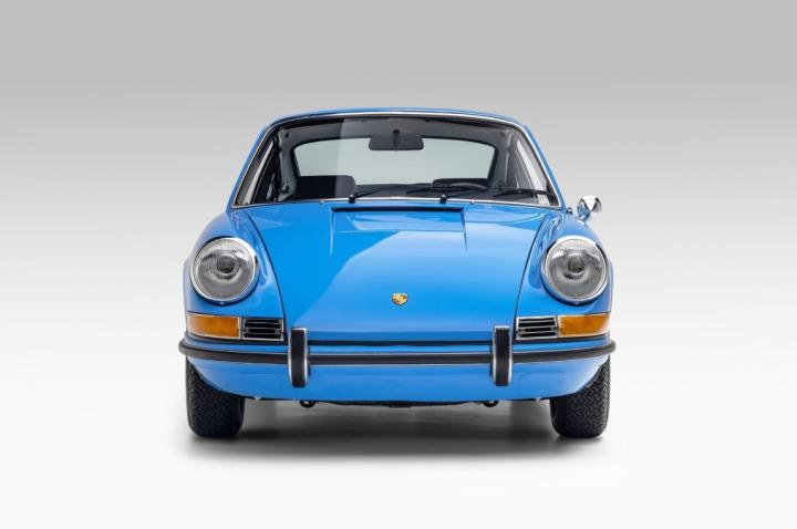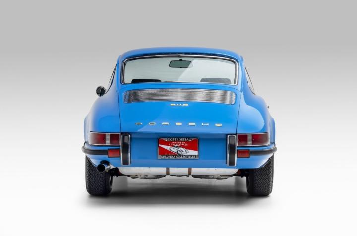 Numbers matching engine 911E Coupe, with five owners, finished in a rare original color combination of Pastel Blue over Black upholstery, as confirmed by the Porsche Production Specification sheet. Factory options include US Equipment, a left-side antenna with speaker and noise suppression, and tinted glass all around.