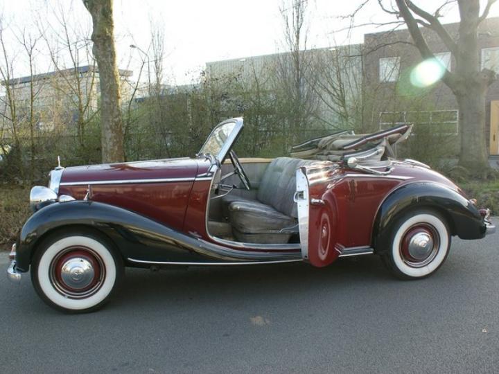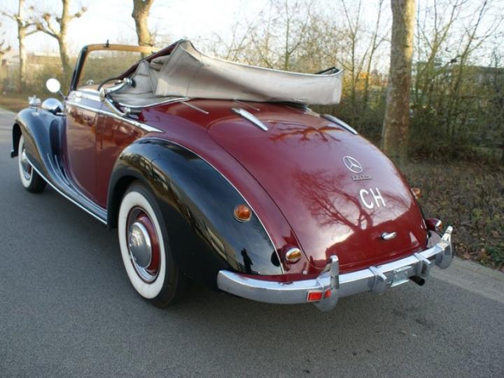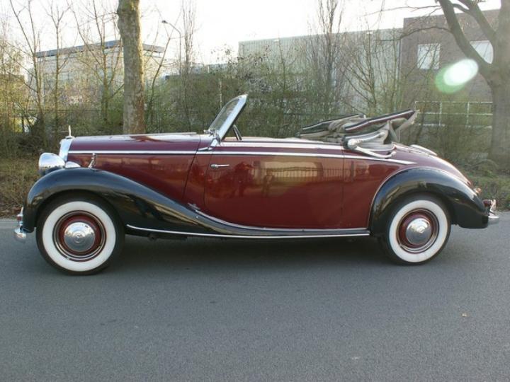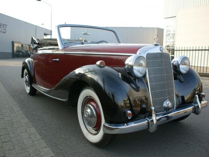 This is a Mercedes Benz 170S convertible A from 1950. Originally the car came from Switzerland. It is a matching number car, so it still has the correct engine after 66 years. This A convertible is in a fairly good condition. The 2-tone paint has some damages. The chrome is pretty nice. The leather interior is still the first from factory and shows her patina after all those years. The wood is in a good condition. They’ve converted it to a 12V in the past, but that is only an advantage. With luggage set from factory. It is a nice 170S convertible A for a Mercedes Benz collector.
