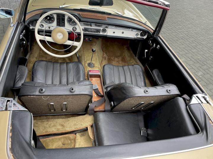 Leuke opknapper deze 230SL handgeschakeld en voorzien van Hardtop en softtop, na jarenlang stilgestaan te hebben in opslag hebben we deze auto weer tot leven gebracht, auto loopt en rijdt nu nadat het benzine systeem verbetert is en een nieuwe benzinetank met pomp en slangen vernieuwd zijn er voor ruwweg Euro 1.250 kosten aan gemaakt.