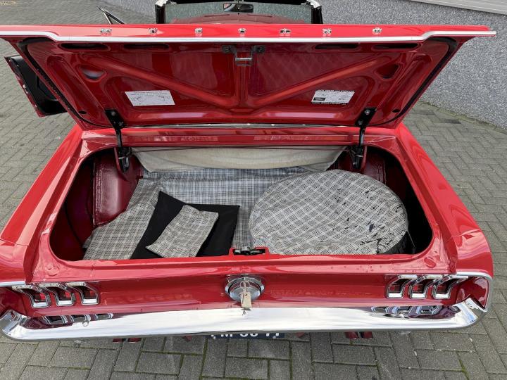 Finished in stunning Candy Apple Red, professionally painted in the Netherlands to a standard better than new, this Mustang presents with extraordinary shine, depth, and workmanship. The car has undergone an impressive restoration inside, outside, and underneath, with the underbody now appearing as new.