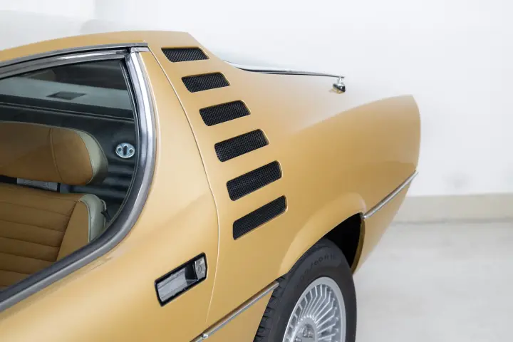 This 1974 Alfa Romeo Montreal comes in the outrageously extravagant and original color ‘Oro Metallizzato’ — the kind of gold that makes you want to wear a thick chain over an open polyester shirt. And we absolutely love it. The party continues inside with an interior just as striking: Avana Beige. It’s the color of a vintage tuxedo — luxurious and suave — and it feels like it’s about to offer you a bottle of Chivas Regal and a lighter. This is the car for the person who doesn’t ask for attention — they simply command it.