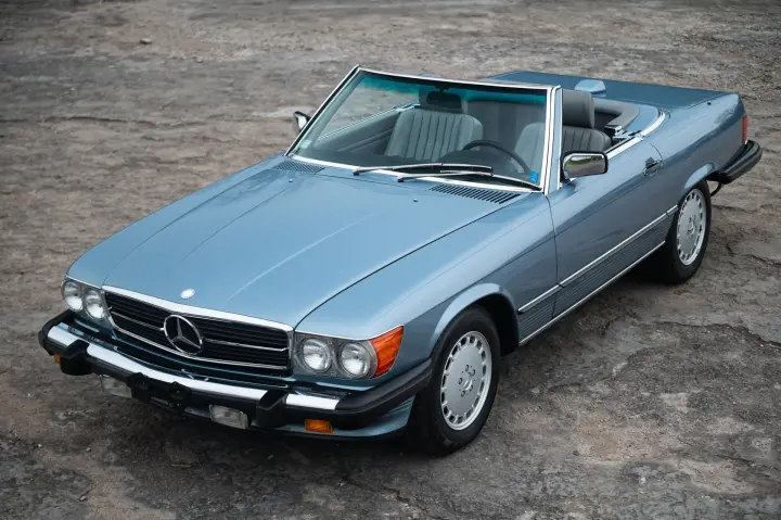 This absolutely STUNNING 560SL two top Roadster is as beautiful in person as the pictures reflect. We have posted 144 pictures to endorse our claim that this is a really special 560SL.If your online venue does not show 144 pictures go directly to WWW.JPFRAZIER.com to review the entire posting. The car was a one-owner car from Tucson, Arizona, until we bought and resold it to a local mature buyer in 2019 with 27,656 miles. Obviously, the car was not used much, and he traded it for another car. We again sold it to a mature buyer in North Carolina, who only had the car for a little over a year before bringing it back to us to resell, as they traveled too much to enjoy it. Both buyers put very few miles, but a lot of work into the car while in their possession. The car has never suffered from an accident or inclement weather. The car shows as a new example from 1986 in every way. When reviewing the pictures posted, note how straight the original car is as well as how crisp and new all bolts, stickers, trim, leather, carpets, door cards, wheel finish, engine compartment, trunk compartment, ALL LOOK NEW!!! This is an incredibly well-preserved example.