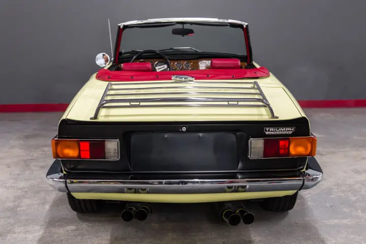 This absolutely exquisite color combination on a frame off restored OVERDRIVE TR6 is the real TR6 experience !! I received this car on a warm sunny day recently and had to embark on a top off British Roadster experience. This TR6 is everything one remembers and enjoys in a tight, well serviced TR6.The car has great audio sound with the upgraded exhaust .The exhaust married to a tight suspension ,quiet, correct operating overdrive transmission and an engine that absolutely purrs then visually a CRISP sharp interior with a beautiful wood dash ,fresh sills and windlace, crisp correct operating gauges as well as full well padded seats- The whole experience is pleasing and definitely brings a smile to your face.
