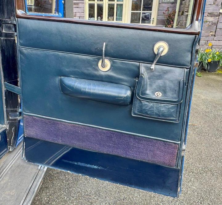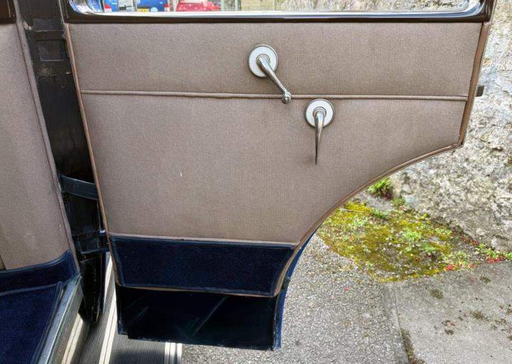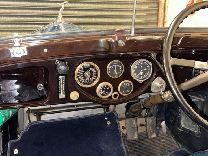 An early, vintage example, stylish and in fine condition. The car was originally exhibited at the London Olympia Motor Show, finished in Ulster Blue, with blue grey cloth to the rear, silver plated fittings and blue leather to the front. Some of this, including silver plated door furniture, remains to this day, and blue is still the theme. Appealing features include Barker Dipping headlights, still working nicely, a large Brooks trunk mounted on the rear, double ‘Diver’s helmet’ rear lights, a triangular stop light and a silver-plated speedometer in the rear of the car, for the benefit of the passengers! We have a copy of Country Life magazine, dated October 1930, which is the Motor Exhibition Number, showing a photo of what is almost certainly GSR40 on the Barker stand at the show. All in all, a handsome car, sound and smart, solidly built, running nicely, and something to be proud to own. Offered serviced and prepared, driving well.