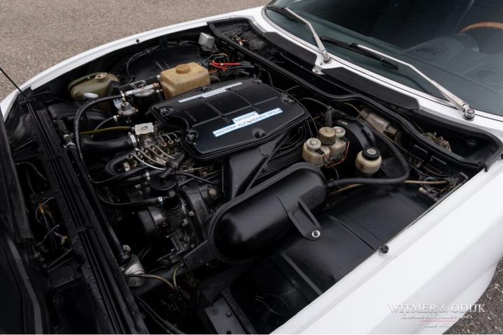 The engine compartment is completely original and clean. The beautiful V8 still has the original factory paint on the valve covers, no corroded oil residue. The whole offers a beautiful view of how the car left the factory in 1972. Visible maintenance has been carried out. All this with correct materials. On the inside of the bonnet still the sticker with oil regulations from the factory. The trunk still has the original upholstery and is nice and clean and undamaged. Original jack and spare wheel present. The 14 inch light-alloy Campagnolo rims are free of parking damage and brake dust. Very good tires around this.
