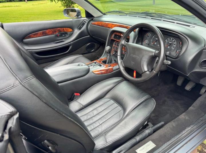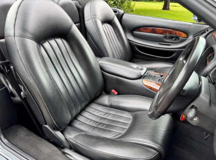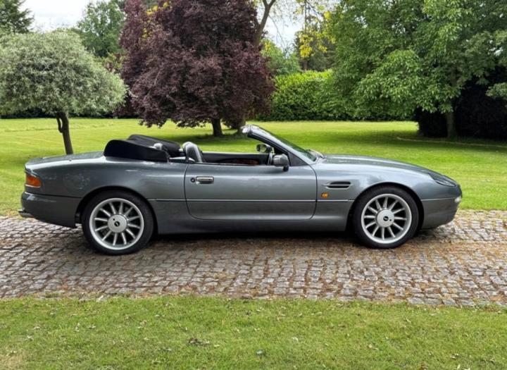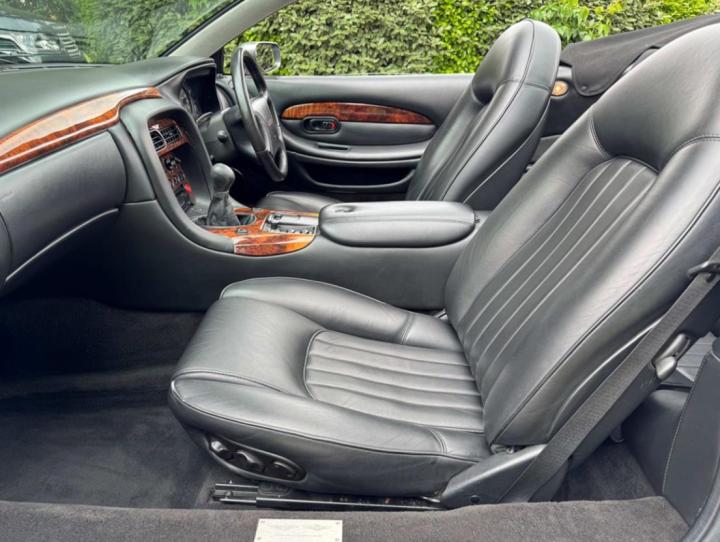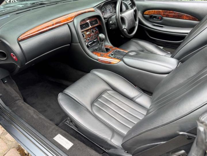 1997 Aston Martin DB7i6 Volante finished in Solway Grey with Obsidian Black hide interior with walnut veneers and best quality Wilton carpet throughout. Unusually fitted with 5 speed manual transmission making it extremely rare. Apparently garaged from new which is no surprise, judging by the outstanding condition in which this car has been kept. Everything about this car suggests that the car has been cosseted by its current and previous owners and the 17 service stamps in the service book. The paint finish remains “As New” and the black mohair electric soft top is in exceptional condition. The specification includes cruise control, heated electric seats, a fully adjustable steering column, a battery cut of switch and 18” alloy wheels in unmarked condition. In our opinion, this car will at very least hold its value for the foreseeable future. £19,950