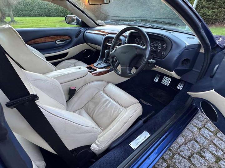 2003 Aston Martin DB7 Vantage finished in Aviemore Blue with contrasting cream and pacific blue hide interior with Walnut veneers and best quality Wilton carpet throughout. This superb example has been in the same careful ownership for the past 15 years during which time it has covered a mere 3,000 miles. It has resided on the island of Guernsey and serviced when required, the most recent of which was in October 2025 and only 350 miles ago. The specification includes Climate Control, heated electric seats, a fully adjustable steering column, alloy pedals, mesh grille nd 19" alloy wheels. The whole car has been beautifully kept and is a credit to its long term owner. Any inspection is welcomed and our price of £24,950 is very reasonable for one in this superb condition. More interior pictures to follow shortly