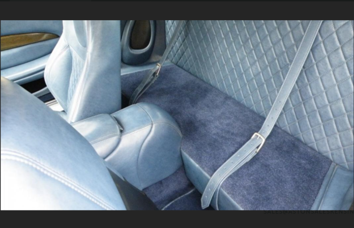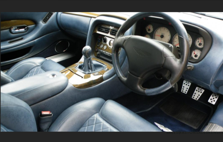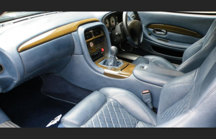 Finished in Aston Martin Skye Silver with Blue Aniline leather interior, blue carpets edged in blue with a Tailors Grey Alcantara headlining.