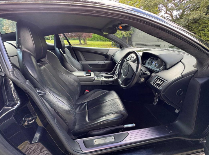 Finished in Onyx Black with Obsidian black hide interior with red stitching, this 2008 DB9 Coupe is in lovely condition throughout. The specification of these cars is always comprehensive and includes automatic transmission with paddle shift for the more enthusiastic driver. It has satellite navigation, climate control, electric heated seats with lumbar support and a fully adjustable steering column. Also fitted is a CD player, Piano black centre console, Powerfold mirrors, high spec Hifi, a black Alcantara headlining, Sport Pack 5 spoke alloys and red brake calipers. Having covered only 45,000 miles, it has remained in superb condition and comes with a full-service history. Priced really competitively for one in this excellent condition at only £29,950
