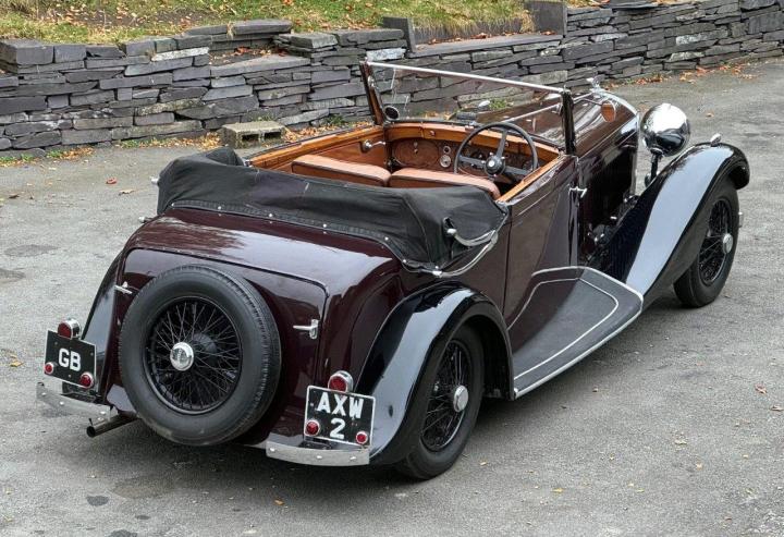 An attractive Derby Bentley, with low-folding hood line, giving a well-balanced appearance from any angle, enhanced by the rear-mounted spare wheel and quarter bumpers. The frontal aspect is also handsome, with an impressive array of lamps and horns. Nicely painted in Burgundy and black, with contrasting tan leather interior and fully-lined hood. Nice mechanically, with a good engine, correct compressions, etc, running very nicely and a 'well-rounded' car, in an ideal condition to use as is, and perhaps improve in some respects as and when convenient. With the car are three history folders which include many invoices for repair and maintenance going back to the 1970s. Between 1974 and 2019 some £73,000 has been spent on the car which, when taking into account inflation since the early part of that period, will probably represent a great deal more in today's prices. Also included are old MoT certificates, correspondence (including letters from the original owner), a buff logbook from the 1950s, and various other documentation. We understand from documentation in the history file that B86AH was with the first owner until 1967. It was with a subsequent owner from 1971 (or earlier) until he passed away in 2023. Fitted with a new aluminium cylinder head in relatively recent times - a significant plus point. Appealing registration number too!