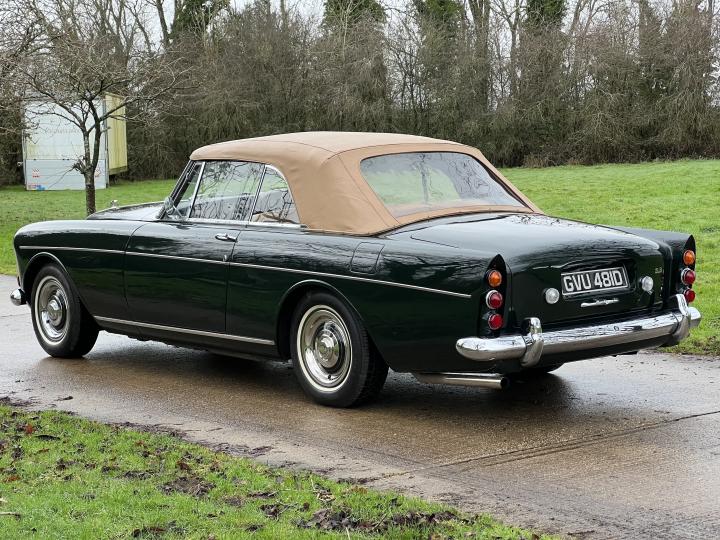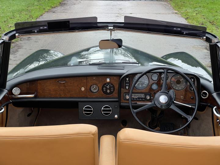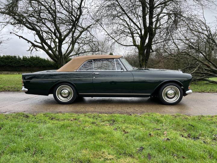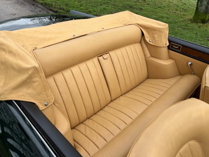 By late 1962 the success of the S Series Continental Bentleys entered its third and final chapter, with the introduction of the S3 Continental. The major cosmetic change was the introduction of the twin headlight system, providing Bentley drivers with more illumination. Mechanically speaking the S3 Continental was very similar to the S2 Continental, but benefited from having larger carburettors fitted and an upgraded power steering system. The success of the Vilhelm Koren designed Bentley S2 Continental had pleased the powers that be at Park Ward and his design was adapted for the S3 Continental chassis, with the introduction of twin headlights. The coachwork did not lend itself happily to horizontal headlights so they were instead positioned on a slight slant, a design that has commonly become known as the Chinese Eye. Chassis No BC100XE which we are currently offering for sale is one of fifty eight cars built in right hand drive to Design No 2006 by Mulliner/Park Ward on the S3 Continental chassis. It was originally completed in December of 1965. Supplied by Jack Barclay Ltd through their west London showroom to its first owner, Mr John Osborne of Chester Square in London. Being a late production example, it benefits from having the slightly lipped wheel arches and chrome strips on the coachwork, giving it arguably a more attractive appearance than the earlier cars. During the 1980’s the car was exported to the United States and in around 2012 it was restored to its striking current configuration, in Balmoral green with a tan hood and a fawn leather interior and matching hood cover. It was supplied in 2014 to its present owner and formed part of a small collection of high quality cars. It comes fully serviced, prepared and tested by Frank Dale & Stepsons and is complete with copy chassis cards and tools. This model continues to become more popular each year and we consider this fine example to not only be a very usable and beautiful classic Bentley, but also one that may benefit from future appreciation in value. Ready to enjoy.