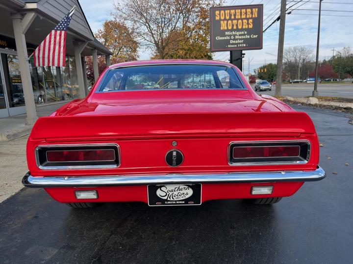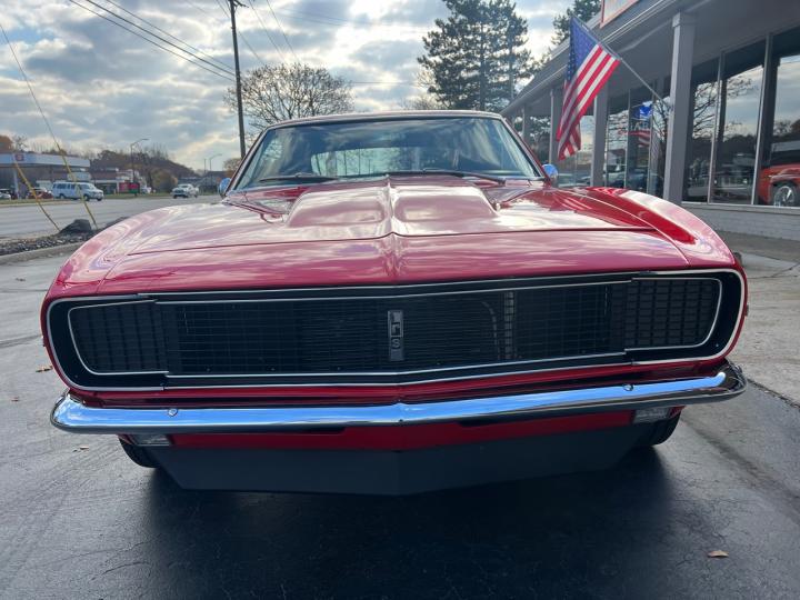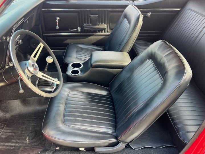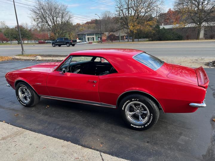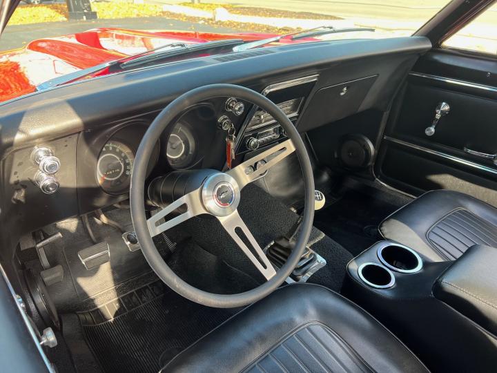 Clean Tennessee car, Recent Body-Up Restoration, beautiful Bolero red paint, black vinyl interior, factory (3L) 350 ci engine, factory (2L) 4 speed manual transmission, Holle dual feed 4 bbl, Edelbrock Victor JR aluminum intake, ceramic headers, HEI distributor, chrome air cleaner & valve covers, power steering, power front disc brakes, aluminum radiator with shroud, bucket seats, Hurst shifter, Sport steering wheel, factory dash, Bosch gauges, Retrosounds radio, dual exhaust, 10 bolt 3.73 limited slip rear end, 235/60R15 Cooper rear tires, 215/65R15 fronts, 15” chrome American Racing Torque Thrust wheel, cowl hood, front & rear spoiler, Detroit Speed hide-away headlights, Ready to Cruise!