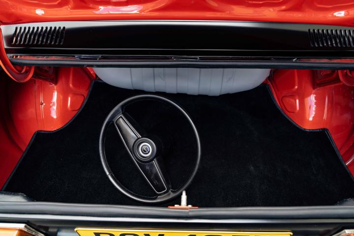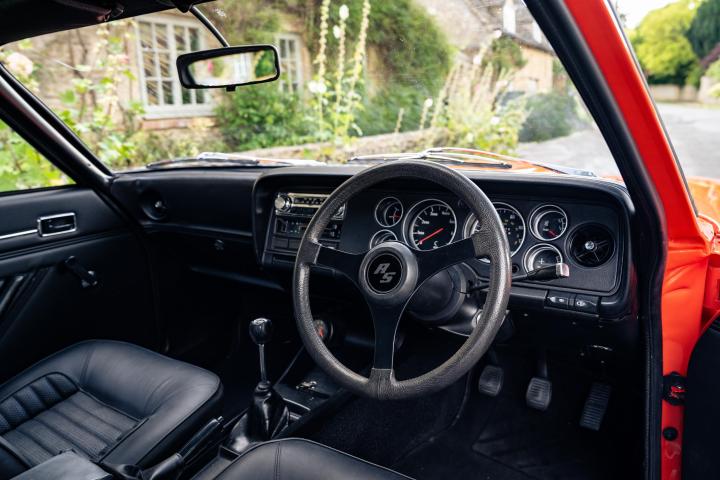 This fine example finished to original specifications in the great shade of Sebring Red was originally supplied by Ford main dealer Phillips and Geake Ltd, the only Ford RS dealer in Cornwall, indeed this was the sole RS delivered new in Cornwall where it has remained for most of its life. First registered in 1974 the car was bought new by Kelly’s Ice Cream, still a Cornwall success story as a company car for a director and clearly a car enthusiast. It must have been quite a sight on Cornish roads back then. He kept the car for some years before selling it to a good friend and RS enthusiast, also Cornwall based. Following his passing the car passed to his brother, a fellow enthusiast who continued to use the car, albeit lightly into the 1980’s as indicated in MOT and tax discs on file. The intention was always to restore the car hence this owner purchased many new old stock body parts and stored them carefully with this intention.