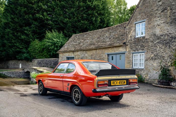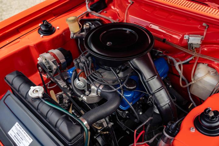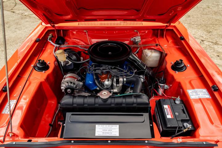 Announced to the press in late 1973, just 250 cars were to be built, all right-hand drive and featuring the distinctive spoiler kit and larger engine to make the Capri competitive in Group 2 once more. Derived from the 3.0 unit found in the Capri 3000GT, the RS3100 featured enlarged cylinder bores giving an overall displacement of 3098cc from 2993cc. Additional Cosworth derived upgrades included hand polished inlet manifolds, cylinder head ports and exhaust ports. Blue cam covers differentiated it from lesser versions. Obviously, there was a myriad of detail upgrades in all areas from suspension to braking.