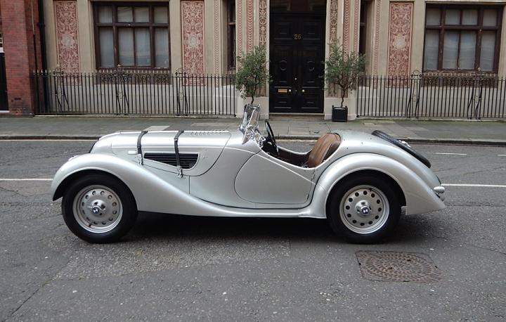 This was the first truly modern sportscar and the Aldington Brothers whose Frazer Nash company already sold BMW’s in Britain were quick to see the potential of the new model. Remarkably the third prototype was a right hand drive model that H.J. Aldington and A.F.P. Fane drove in the 1936 French Grand Prix. The same car covered 102 miles in an hour at Brooklands in the hands of journalist racer, Sammy Davis. The BMW factory built a total of 464 cars of which 45 were built to special order with right hand drive and marketed as the Frazer Nash BMW.