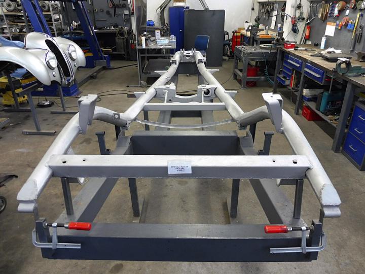 What followed was remarkable not only in the detail that was gone into but also that every operation was recorded and photographed in a file that contains over 2,000 pictures. The car was stripped to the chassis, which was then blasted and and set on a jig. The chassis elements were then dis-assembled, checked for corrosion, trued and re-assembled. Following this the engine was rebuilt with new rods, pistons and bearings and a new cylinder head. A new Hirth type gearbox was installed, the rear axle was rebuilt along with the front suspension, brakes, steering, fuel system and electrics. Everything was done and photographed for good measure.