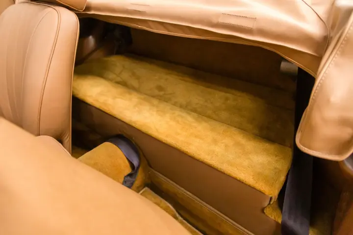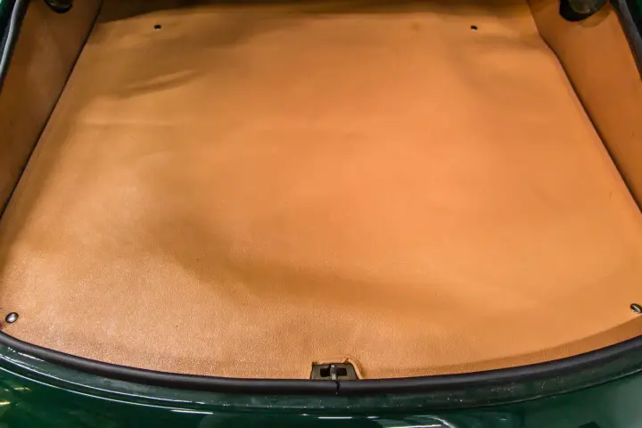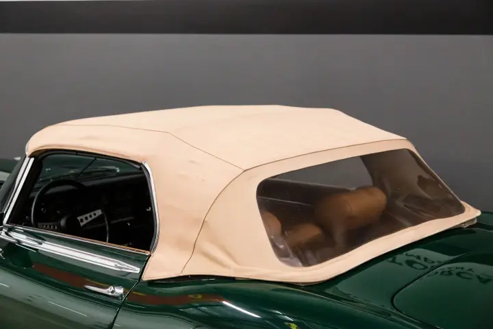 The paint, leather interior, soft top, bright work, body gaps, and body panel gaps are in excellent condition. The car just received a new set of tires. There are no cracks on the dash and no warping. The gauges are clean and work as designed.