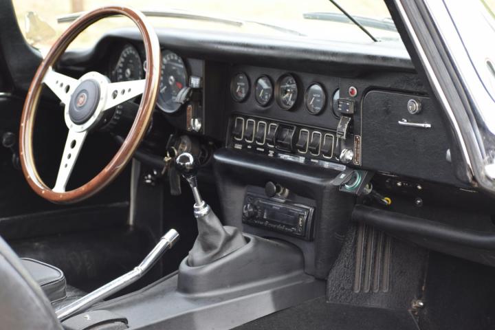 J'ai le plaisir d'offrir à la vente cette Jaguar E Type V12 OTS. Enregistrée pour la première fois en mars 1974, ce qui en fait l'une des dernières produites, la production ayant cessé en juin de la même année. Chassis No : 1S 25471 étant l'une des 63 voitures du marché domestique non taxées livrées par Henly's de Londres et l'une des 2 seules voitures V12 LHD OTS Manual livrées par eux et enregistrées à Coventry le 23 août 1974, portant le numéro d'enregistrement : NWK 213N.