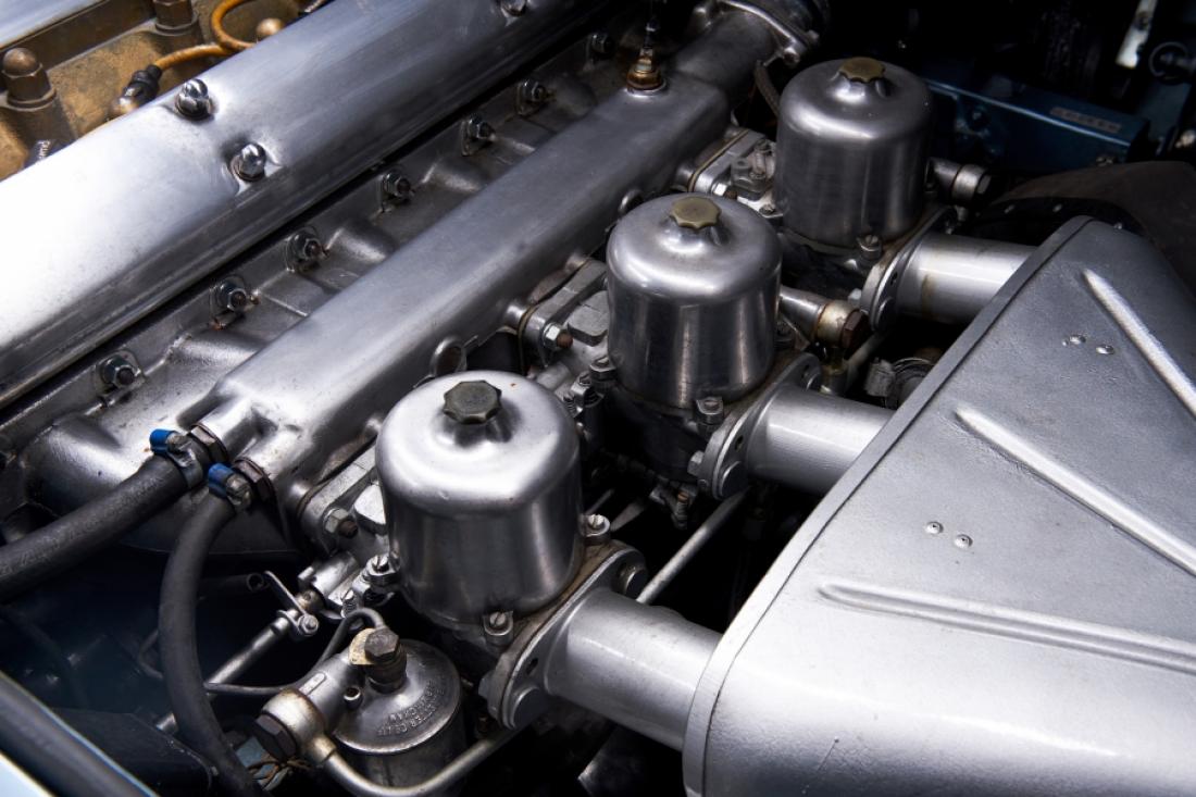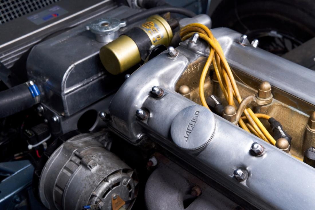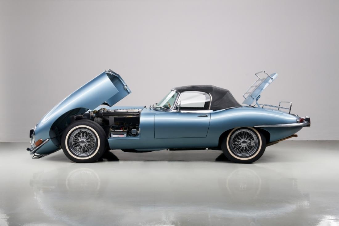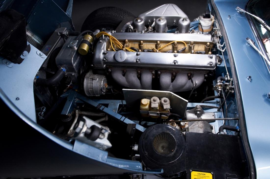 Production of the car began in 1961, and it originally featured a 3.8-liter overhead-cam six-cylinder engine. Its styling, which was the work of Malcolm Sayer and had been overseen by company founder Sir William Lyons, evolved from Jaguar’s Le Mans–winning D-Type race cars. The E-Type’s construction was a multi-tube front end bolted to a steel body shell.