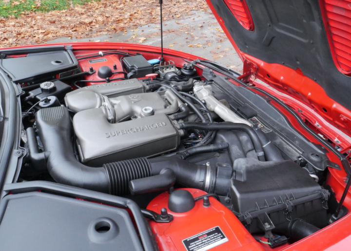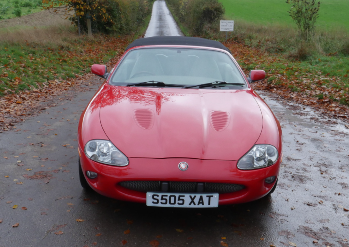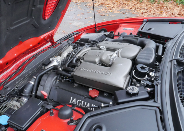 Superb in red with beige leather interior, just over 80,000 miles on odometer backed up by lots of old MOTs, 14 service stamps plus plenty of history, recent work to air conditioning, new MOT with no advisories, excellent body, paint, interior and roof, stainless exhaust, all the usual refinements, and roof cover. Comes with V5, complete Jaguar booklet pack including service history and MOT. XKR features mesh front grille, bonnet louvres, boot spoiler, 18" alloys, Eaton supercharger, 0 to 60 in under 6 seconds..