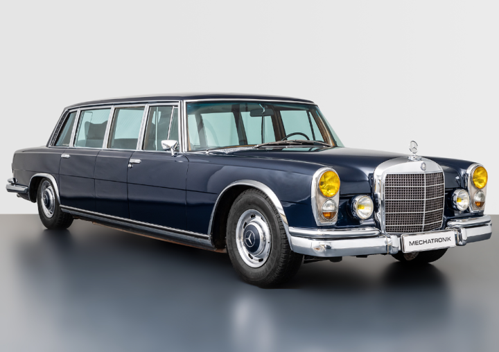 Der hier angebotene Mercedes-Benz W100 600 in der seltenen Pullman Ausführung wurde laut der uns vorliegenden Datenkarte am 26. Februar 1969 an das noch heute existierende Luxushotel Royal Elysées im Zentrum von Paris, nur wenige Meter entfernt vom Arc de Triomphe ausgeliefert. Es ist anzunehmen, dass der Wagen in den folgenden Jahren als Shuttle Fahrzeug für die wichtigsten Gäste des Hauses eingesetzt wurde. Im Jahr 1990 wird der 600er Pullman über den Gerichtsvollzieher Roger Stauffer, ansässig in Straßburg, an seinen neuen Besitzer, für 619.269,50 Francs veräußert. Die Verkaufsbescheinigung liegt uns ebenfalls vor. Der neue Besitzer, wohnhaft in Tamm nahe Stuttgart investiert in den folgenden Jahren 17 Jahren über 90.000,- € in technische Arbeiten, unter anderem in das Luftfahrwerk, Hydrauliksystem, Motor und Bremsen, um sein Fahrzeug durchgängig in fahrbereitem Zustand zu erhalten. Sämtliche Rechnungen, sowie ein Gutachten aus diesen Jahren liegen vor. Gleichzeitig wurde höchster Wert auf die Originalität gelegt und so ist noch heute die originale Innenausstattung im Fahrzeug verbaut. Im Jahr 2007 erfolgte der Ankauf durch die Mechatronik Sammlungsverwaltung, welche den Wagen in unserer hauseigenen Ausstellung einlagerte und für besondere Anlässe nutzte. Heute präsentiert sich dieser 600 Pullman in voll funktionsfähigem Zustand und ist insbesondere aufgrund der Originalität eine Bereicherung für jede hochkarätige Mercedes Sammlung. Für Detailfragen steht Ihnen unser Verkaufspersonal jederzeit gerne zur Verfügung. Bitte beachten Sie, dass Fahrzeugbesichtigungen grundsätzlich nur nach vorheriger Terminvereinbarung möglich sind.
