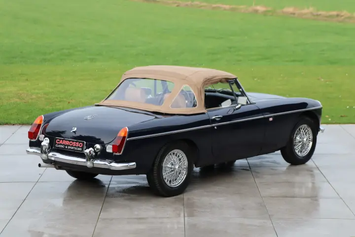 The MG B succeeded the MG A in 1963, a car that was already quite popular for MG - part of The British Motor Company (BMC) - with over 100,000 units sold. The MG B would be produced until 1980, with over half a million units ultimately being produced. In addition to the roadster, other variants were also produced, such as the MG B GT three-door 2+2 coupé (1965-1980), the six-cylinder MG C (1967-1969), and the eight-cylinder MG B GT V8. With its 1.8-litre engine and 95 hp, the MG B was considerably more powerful than the 1.6-litre MG A. In addition to performance and handling, the MG B had to score highly in terms of safety and affordability. This combination made the car a great success. The body is self-supporting and the low centre of gravity and use of aluminium body parts ensure a low weight of 970 kg and a high degree of manoeuvrability. The independent suspension system, in turn, enhances comfort. In short: a great success at the height of the British car industry. An ideal classic for touring, holiday trips or simply to cherish.