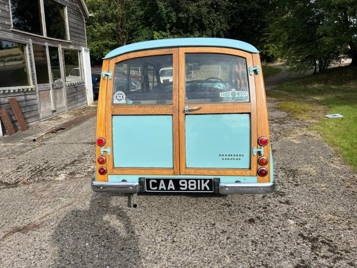 Just in.....don't miss this one! MOT to September 2025 (no advisories from last MOT) The car has had a braking system refresh carried out within recent months. This is a beautiful example of one off Britain's favourite classic cars (they are well loved across the rest of world too!). A Traveller from the very last batch to have left the production line (registered in August 1971), she is a previously fully restored car in the wonderful colour scheme of Bermuda blue in stunning order with contrasting trim in equally excellent condition, the all important (structural) woodwork having been replaced in 2021 (receipt present). She is extremely under the bonnet too. You will be very impressed by her. Please view the detailed walk around video for a very full description of this special old classic. Looking good is only one aspect of this car, she happens to drive extremely well too!..remarkably she has only covered a shade under 58 thousand miles...this is reflected in the condition of the car and having been fully refreshed within her 54 years. There is lots and lots of early service and repair invoices from the 1980's to collaborate her very low mileage, there is a large collection of old MOT's going back to the early 1990's and certainly al of the more recent MOT's too. There is even a little book of motoring expenses from the original owner detailing the fuel used from driving the car around both Hampshire and Dorset. The car is a very capable mover and being the last of the Minor's she is fitted with the most powerful version of the beloved A series BMC engine, the 1098cc. The later cars had stronger gearboxes than the early models and the relatively low mileage means the car remarkably seems to drive as if you had brought her decades ago! The condition of the car means she would be ideal for taking to classic car shows, or she could even be your daily driver as she very much up together and ready to delight!. Be prepared for lots of friendly attention, people will wave and children will smile as you drive past. If you are new to classic car ownership, you will be pleasantly surprised with the somewhat low running costs owning a vehicle such as this one shall bring, car insurance is often in the £100 to £200 price range (depending on the usual factors), the car is both road fund tax exempt and MOT exempt (albeit this one has been MOT'ed throughout the exemption period). The Minors are economical with a sensible MPG return and parts are plentiful and rather inexpensive...lots of specialists are on hand to keep these delightful little cars going strong. An excellent owners club exists and help is at hand for new owners of these special cars. We have sold many of these particular models over the years and we know how to look out for a good one, all the cars we sell go through our own highly respected classic car garage and they are fully checked over and prepared to the highest standard. We offer a highly competitive full UK delivery service (we require your postcode for a delivery quote), we can also part exchange in your existing classic/modern or light commercial vehicle, this can be collected when you car is delivered. We are based in the North Hampshire countryside in Overton (RG25), the M3 motorway is a 10 minute drive away, both the A303 and A34 are within a 10 minute drive too. Overton railway station is just a short walk from us should you decide to drive her home!