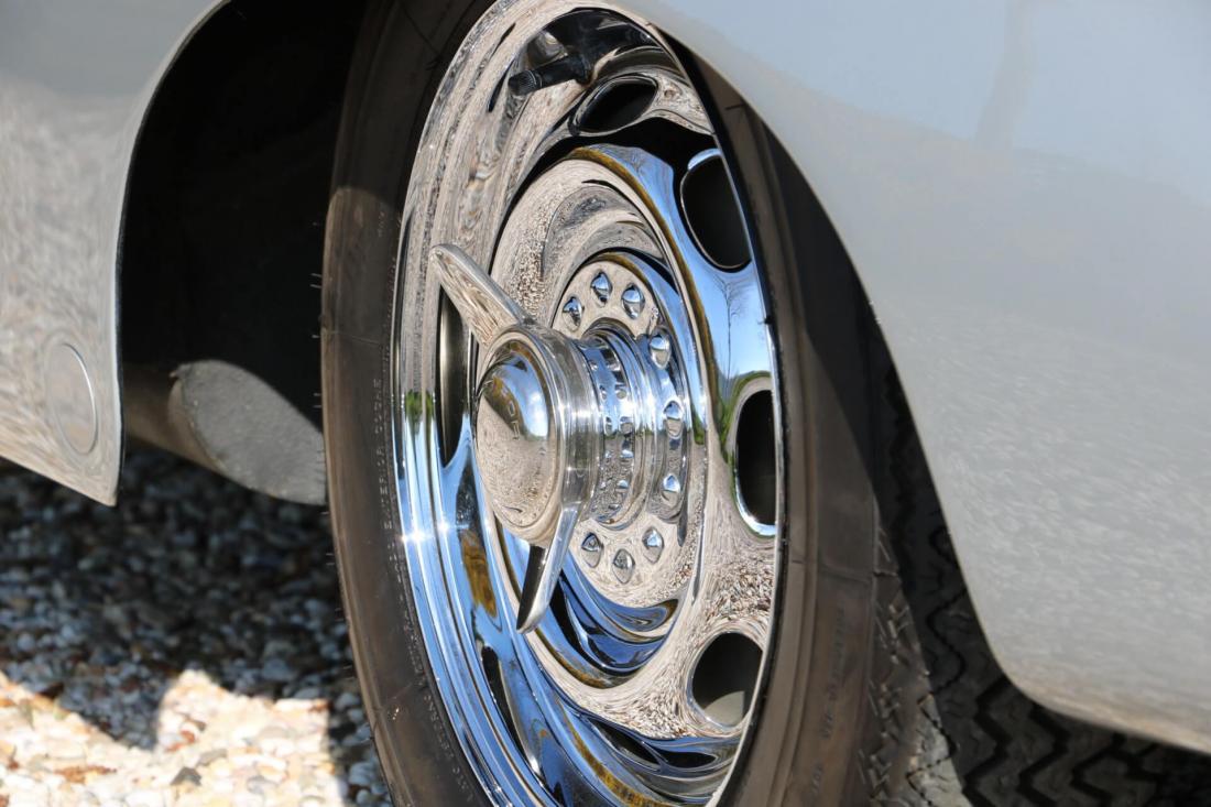 The car was restored before 2003 and has been in enthusiast hands since. There are a few wrong details which can easily be improved. However, as most people appreciate original colors nowadays, it’s likely a new owner will paint her back in White and install a Red leatherette interior. The car was completely inspected by well-known marque specialist Dipl.-Ing. Rolf A. Sprenger. This was done on behalf of the current owner, after he acquired the car. His report is dated 19 December 2011. The car still has the original doors with original body number (#012). The bonnet has been installed from a Carrera GT (#689), has five louvres on both sides and is made of aluminium.