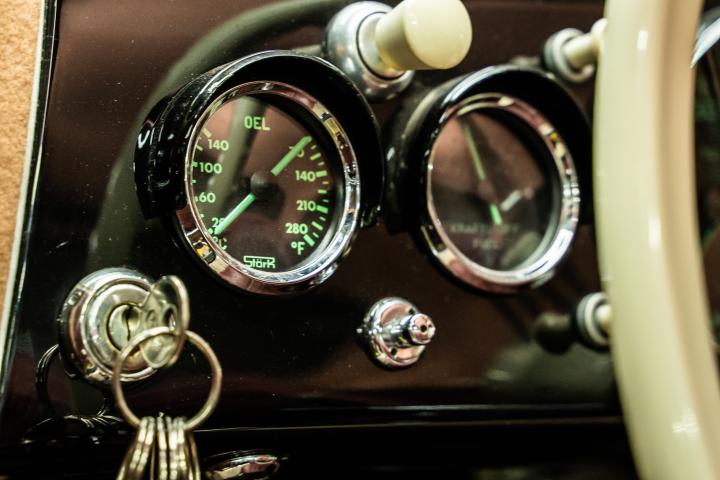 This Model 52 was delivered in black with optional equipment including a Telefunken Radio, Hirschmann antenna, chrome hubcaps, special finned hubcap surrounds and bench seat. The original engine and transmission remain with the car. The engine is a Type 527 air-cooled four-cylinder. Displacement of 1,488 cc and 60 bhp, stamped engine number 30663.