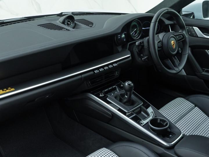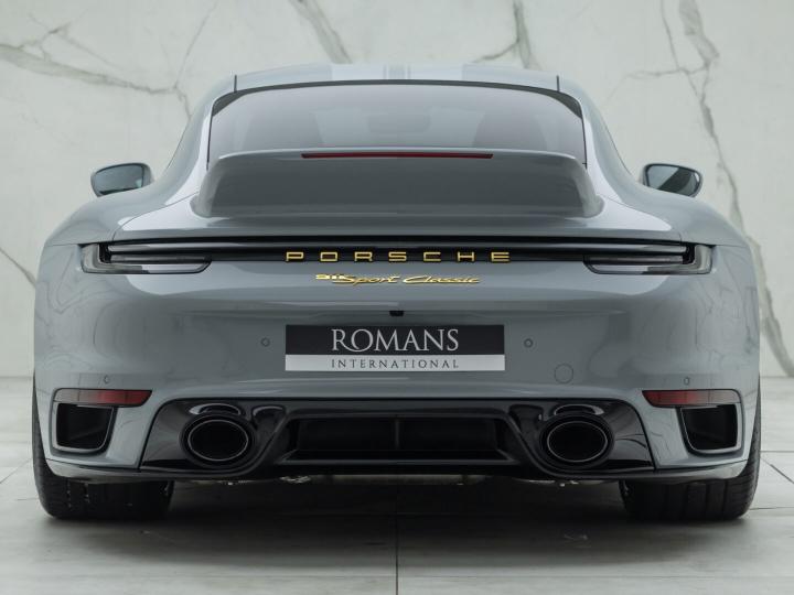 Limited to just 1,250 units, the Sport Classic epitomizes exclusivity with genuine gold lettering, distinctive painted stripes, and its signature ducktail spoiler. Inside, the craftsmanship shines with open-pored wood trim, and iconic Pepita houndstooth upholstery, creating a driving experience that is both nostalgic and cutting-edge. Its collectible status is further cemented by its rarity, meticulous attention to detail, and a design that pays homage to Porsche's heritage while delivering a driving experience for the purists make the 992 Sport Classic a highly sought-after piece of automotive art.