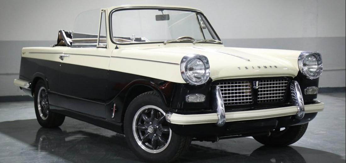 Giovanni Michelotti was commissioned to style the car by the Standard-Triumph board and immediately produced designs for a two-door saloon with a large glass area that gave 93 per cent all-round visibility. It was decided that the car should have a separate chassis rather than adopting the newer unitary construction. Every panel – including the sills and roof – could be unbolted from the car so that different body styles could be easily built on the same chassis. The car was launched at the Royal Albert Hall in London on 22 April 1959. An addition to the original coupé and saloon models, a convertible was introduced in 1960. It was launched with a 948cc engine then a 1147cc and finally with a 1296cc engine, which produced 61 bhp.