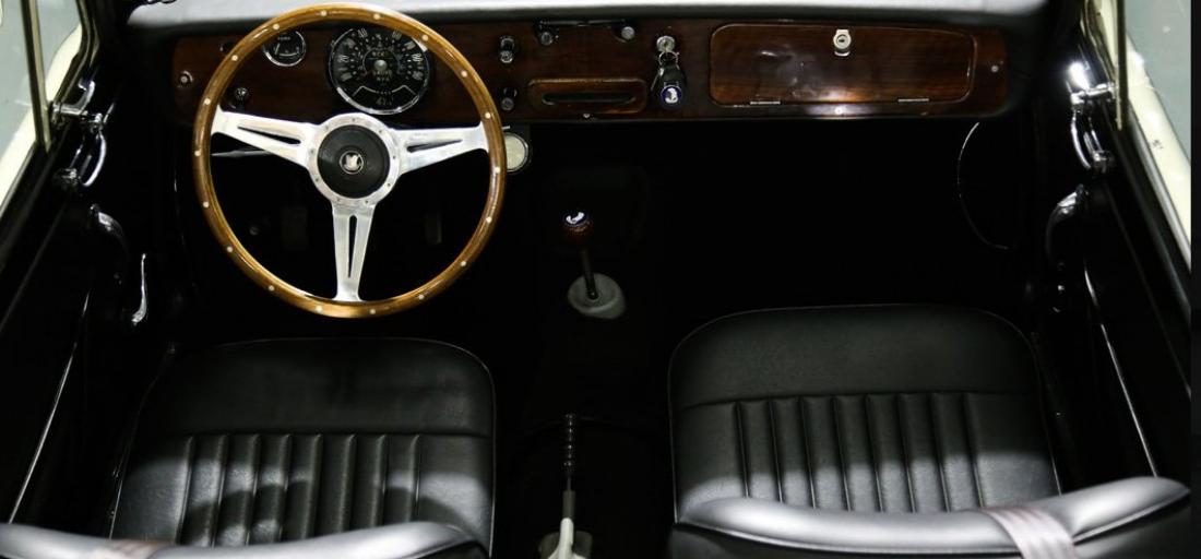 Our Triumph Herald at the Nostalgia Classic Cars has 54,000 miles on the clock comes with a manual gearbox, black leather seats, a beautiful wood-paneled dashboard and with handcrafted wood rim steering wheel from the renowned British steering wheel maker Moto Lita. Over the years they supplied Sir Stirling Moss, Paddy Hopkirk (winner of the Monte Carlo Rally) Timo Makkinen (who drove using a Moto-Lita in the Mini Works Racing Team) the Sultan of Brunei and many car manufacturers like AC Cars, Shelby Mustang, Jaguar, Jensen, Tvr, Rolls-Royce and Aston Martin used Moto-Lita steering wheel as original equipment for their cars. It takes around 12 man-hours to complete each steering wheel. Moto-Lita defines the meaning of the true British craftsmanship.