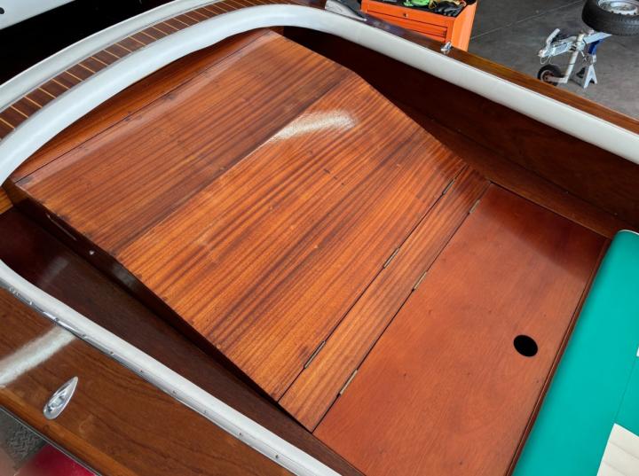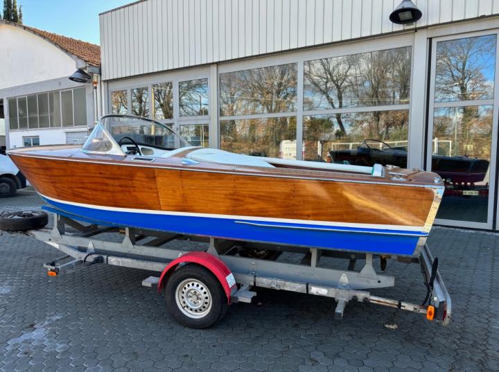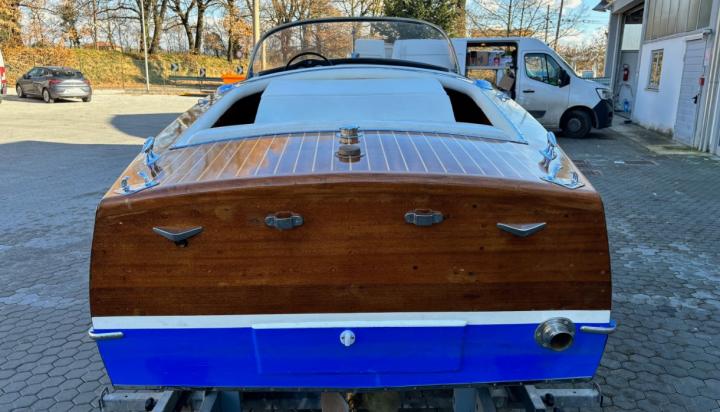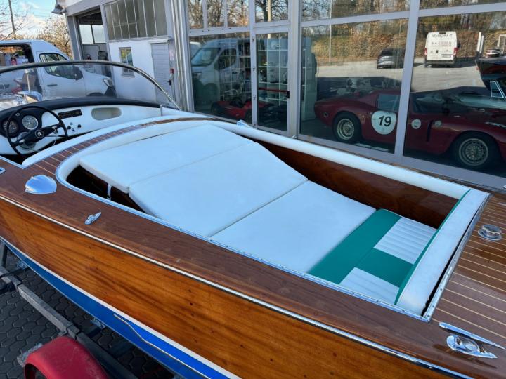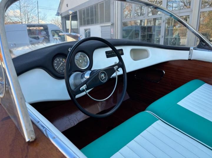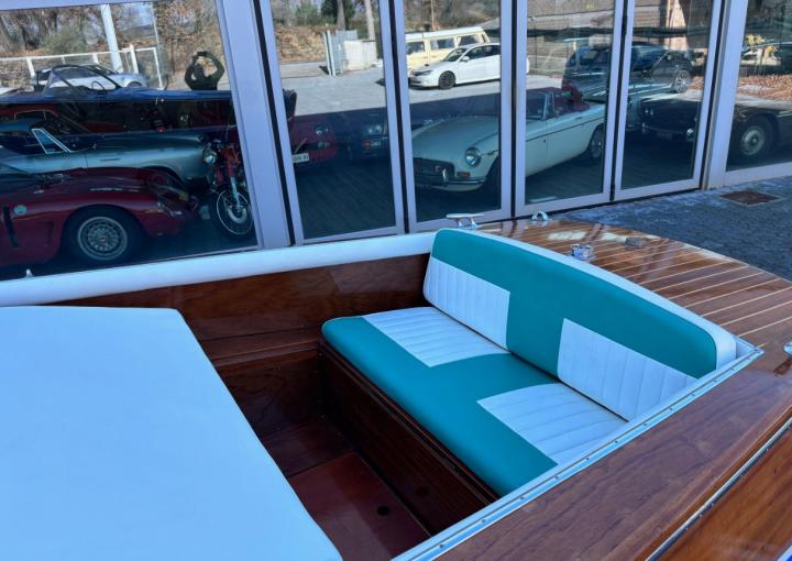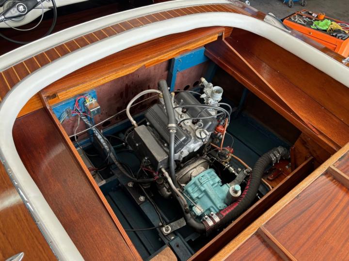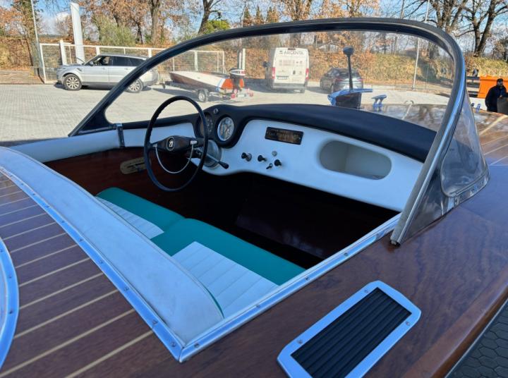 Questo motoscafo è stato completamente restaurato ed è quipaggiato con un motore entrobordo V4 della Lancia Appia.