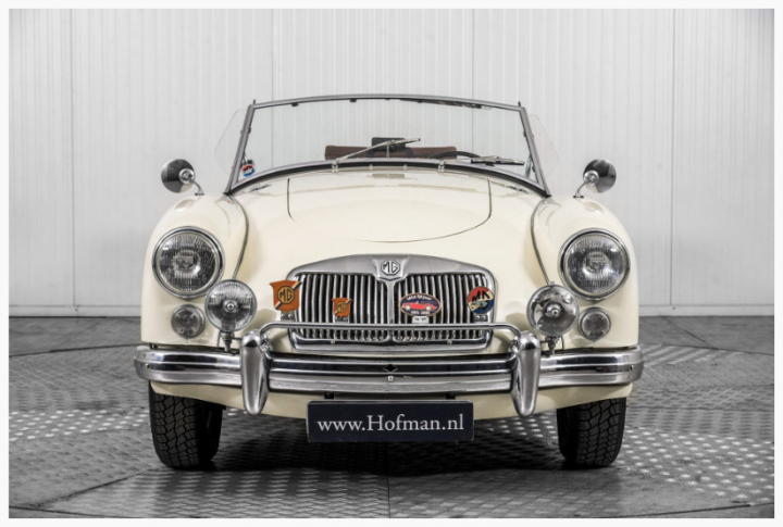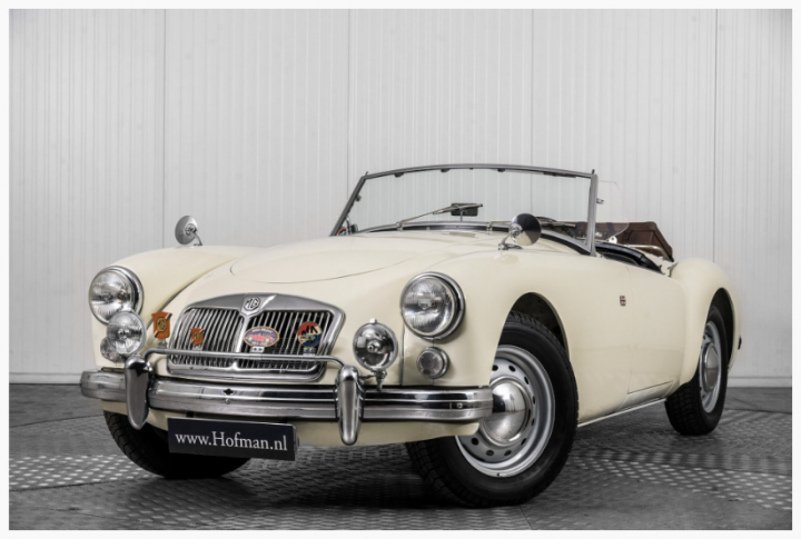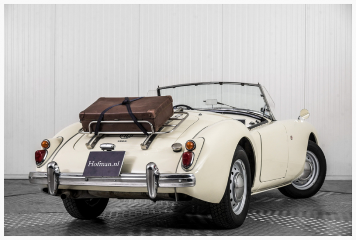 MG MGA Roadster welke verkeert in een keurig gerestaureerde conditie! De zeer strakke body met keurige pasvorm oogt fraai in het Old English white Het design van de MGA spreekt nog altijd tot de verbeelding, een zeer elegante lijn met prachtige rondingen. Het oorspronkelijke dateert uit de vroege jaren 50 toen de MG ontwerper Syd Enever een gestroomlijnde koets tekende voor Le Mans rijder George Philips. Destijds werd er gereden met het chassis van een MG T-Type welke niet geschikt bleek en alvorens de MGA in productie ging werd er een volledig nieuw onderstel ontworpen. Het interieur van dit exemplaar werd uitgevoerd in keurig zwart, een mooie kleurstelling! Het oude grote stuurwiel vervaardigd uit bakeliet is aanwezig evenals de schitterende originele klokken in het strakke dashboard. Technisch een heerlijke klassieker om mee te rijden en dankzij een prima comfort uiterst geschikt voor langere ritten. De 1600 cc motor beschikt over voldoende vermogen en loopt uitstekend. Het 1600 model was voor het eerst uitgerust met schijfremmen, wat een duidelijke verbetering was ten opzichte van de trommel remmen. Het zogenaamde 'weather equipment' is compleet met een tonneau cover, softtop en ook zijramen. De originele velgen met bijbehorende wieldoppen geven de auto een authentieke jaren 60 uitstraling. Van de restauratie in 2002 is een uitgebreid fotoverslag ter inzage beschikbaar . Bedrijfsinformatie: Prijswijzigingen, druk- en zetfouten voorbehouden. Altijd ruim 500 auto's op voorraad, check de actuele voorraad via www.hofman.nl. Volg ons ook op facebook.com/HofmanLeek. Bel ons voor de mogelijkheden voor inkoop, verkoop, consignatieverkoop en stalling. * Veilig online kopen @ hofman.nl * Levering aan huis mogelijk * Inruil mogelijk. Al onze autos staan met een zeer uitgebreide fotoreportage (60-100 fotos) online op www.hofman.nl.