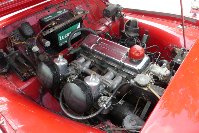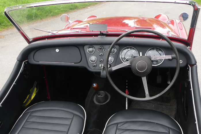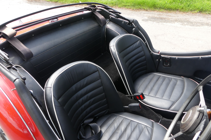 Excellent in red with black leather interior, has had recent respray and re-furbished interior, bodywork carried out in 2017, mechanical work as required including recent aluminium fuel tank. Paint, chromework and interior are all excellent as are the hood and side-screens, also has wire wheels, Kenlowe fan and tonneau cover. Drives well with strong engine and good brakes, comes with some history and lots of old MOTs.