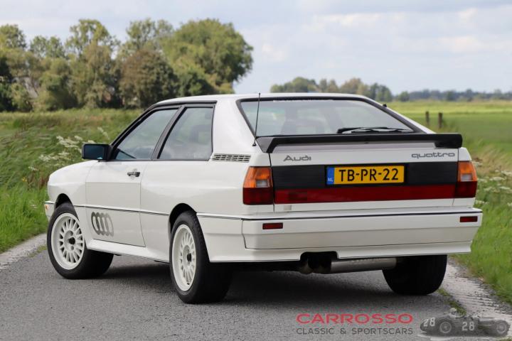 Quattro. A well-known if not the most famous title within the Audi world. Translated from Italian, it means '4'. This is a reference to the all-wheel drive included in the 'Quattro' models. The Audi Quattro has mostly made its name known within rallying. It was first introduced in 1980. It was the first car to combine four-wheel drive with a turbocharged engine. This combination revolutionised the rally world and made the Quattro an icon. In 1981, the Quattro won its first rally and dominated the sport in the following years. Audi continued to develop the Quattro and in 1984 the Sport Quattro was introduced. This car had a shorter wheelbase and was lighter than its predecessor. It was the most successful rally car ever and is still considered one of the most iconic cars ever made.