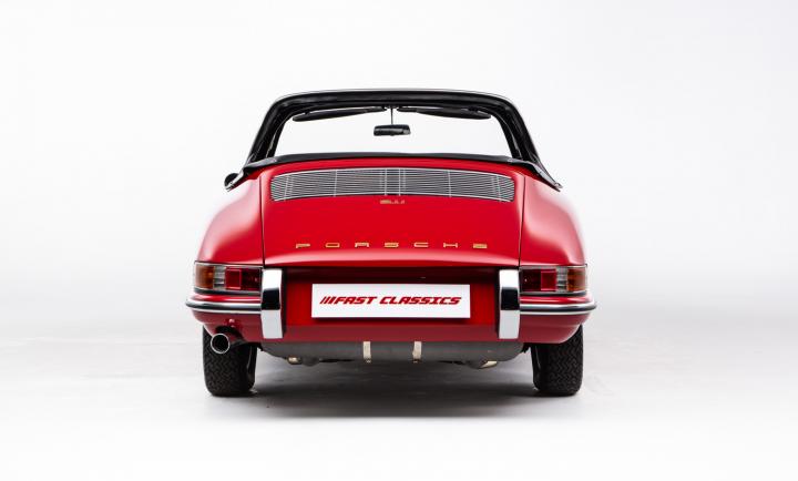 The light fabric roof and Targa soft top set a quite unique tone for this age defining classic and indeed only 925 units with S engine, short wheelbase and soft window were produced by Porsche between the end of 1966 and 1968.
