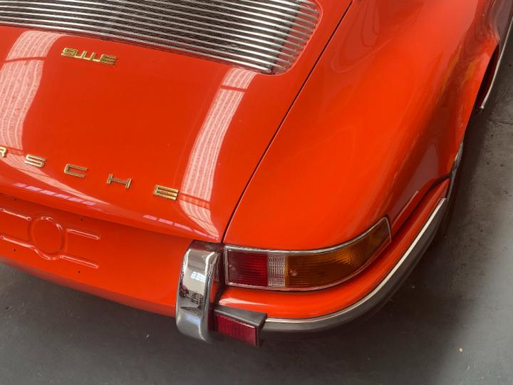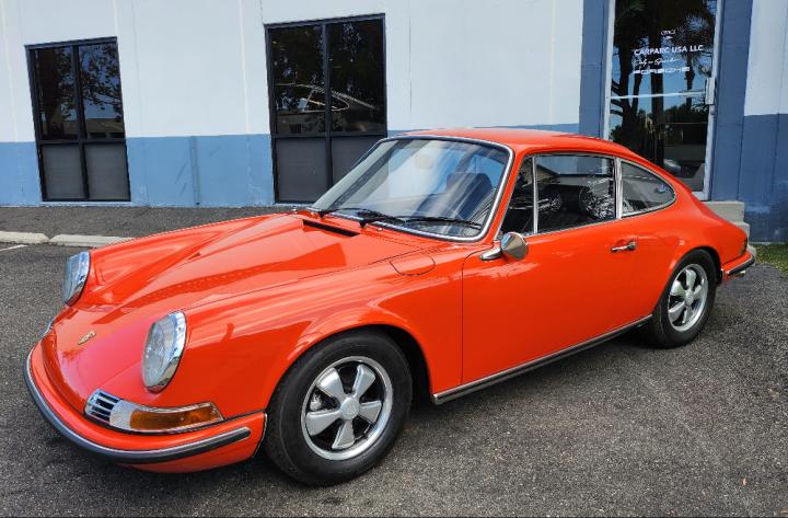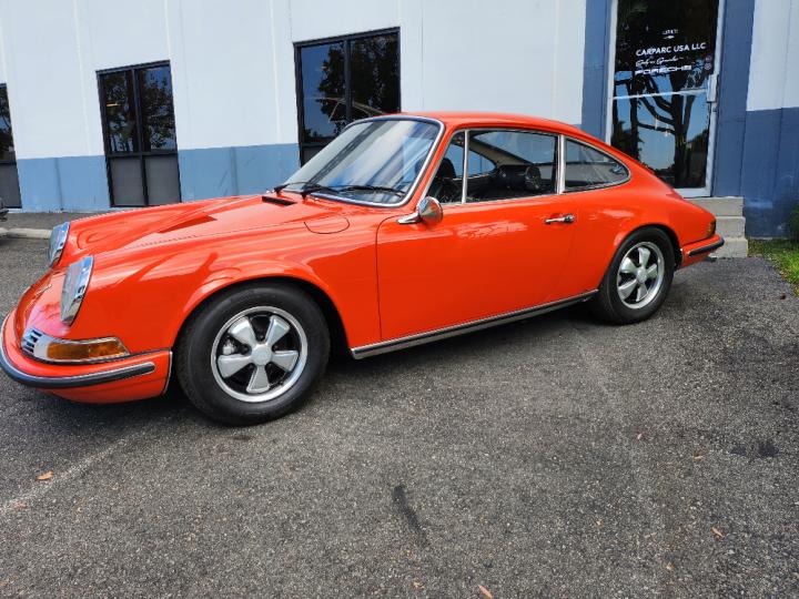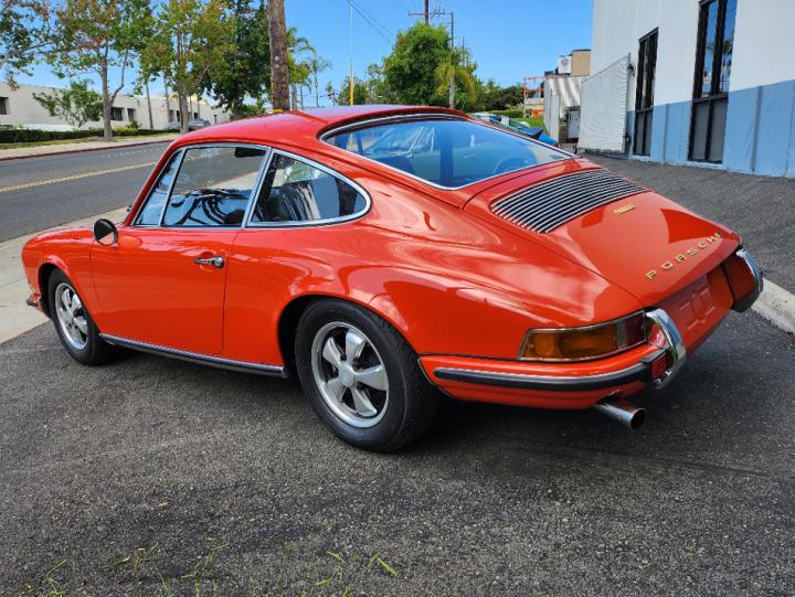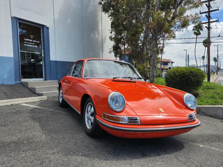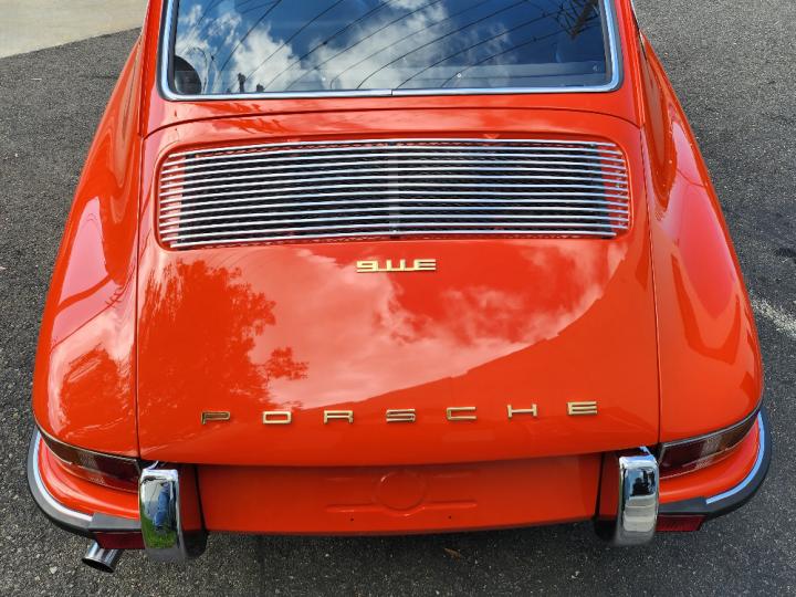 For sale is this very nice example of a 911E , painted in its original and rare tangerine color with black leatherette interior. Matching numbers.