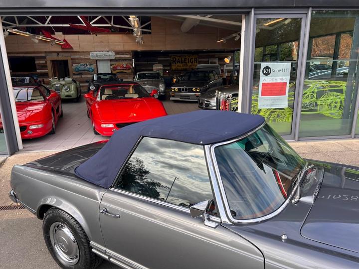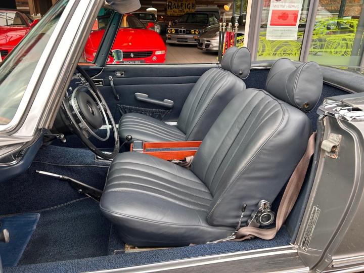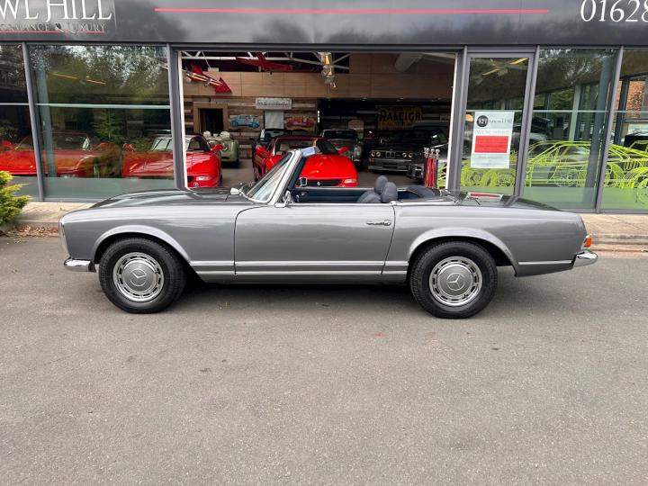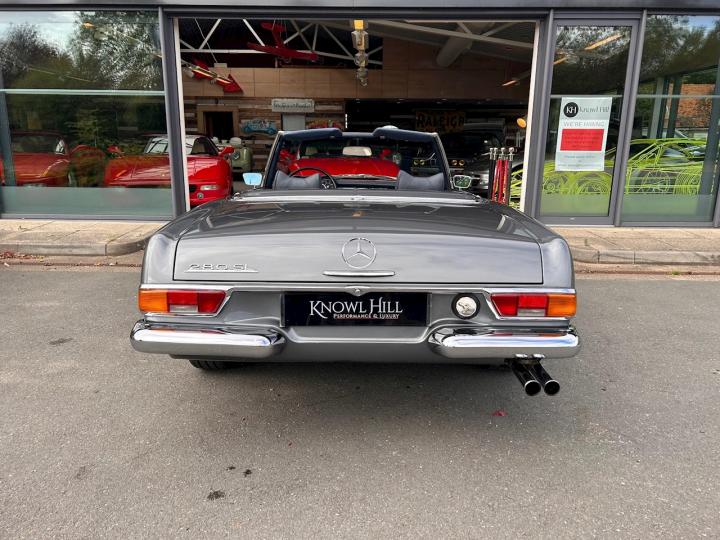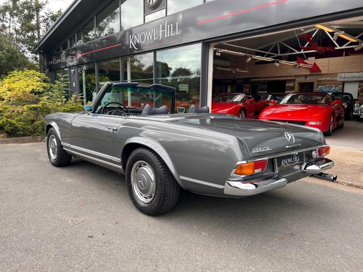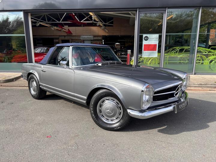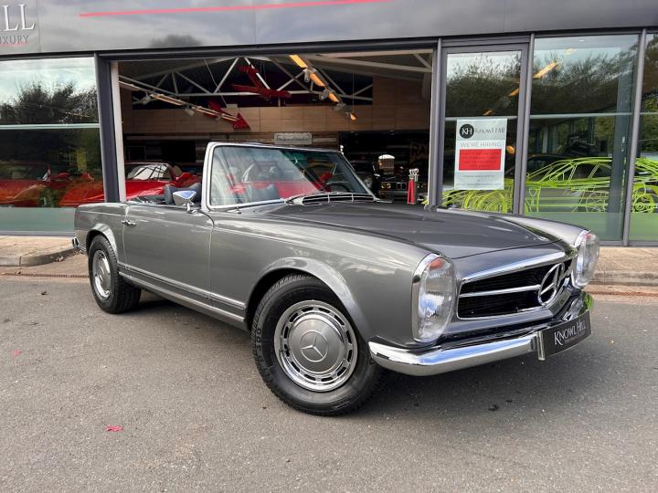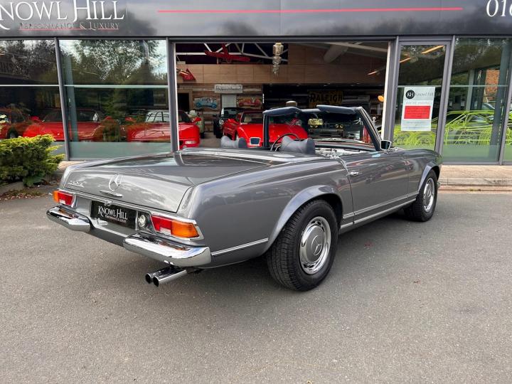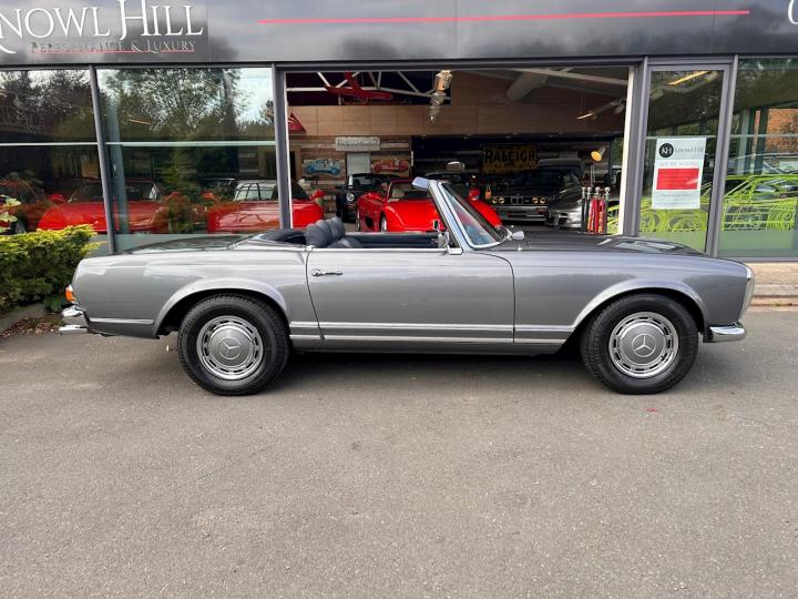 We are proud to offer this stunning Mercedes 280 SL Pagoda which has been beautifully restored in metallic grey with blue leather upholstery. This car was imported from California to the UK in 2014 then underwent a full restoration and converted to European specification prior to its registration in 2016. It comes complete with its hard top roof, original owner’s manual, service book, Becker audio manual, USA service directory, various receipts and invoices from its time in the US alongside all the restoration and service paperwork since the car has been in the UK. It is in need of nothing, everything works as it should and is ready and waiting to be thoroughly enjoyed by its new owner. If you have any further questions or would like to book an appointment to come and view this beautiful car please call a member of our sale team on 01628 825110. At Knowl Hill Performance & Luxury your experience with us is key, we offer full main dealer facilities from service, MOT and warranties to detailing, tyre changes and everything in-between. All our cars come fully detailed, and clear HPI certificate.