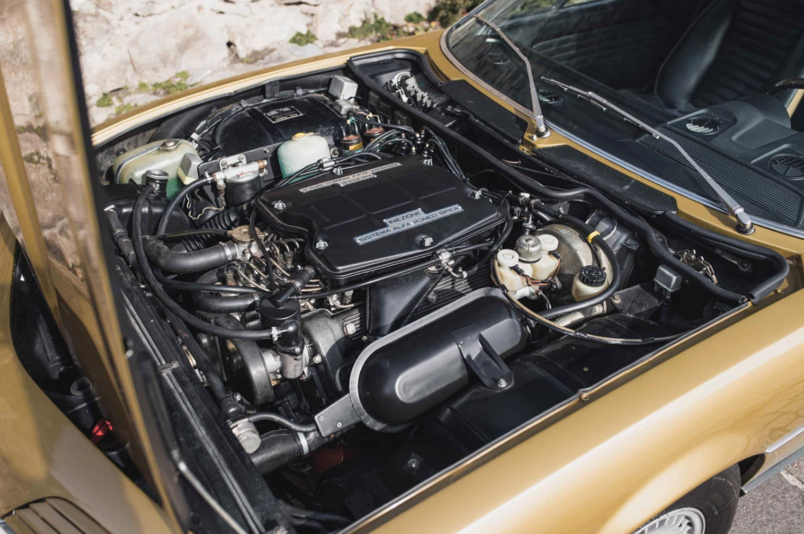 Beneath the Montreal’s sleek exterior lies a potent heart—a 2.6-liter V8 engine capable of producing 200 horsepower. This engine, derived from Alfa Romeo’s successful Tipo 33 sports prototype racer, propels the Montreal from 0 to 60 mph in just 7.6 seconds and allows for a top speed of approximately 137 mph. The V8 engine is mated to a smooth-shifting 5-speed ZF manual gearbox, enhancing the car’s sporty driving experience.