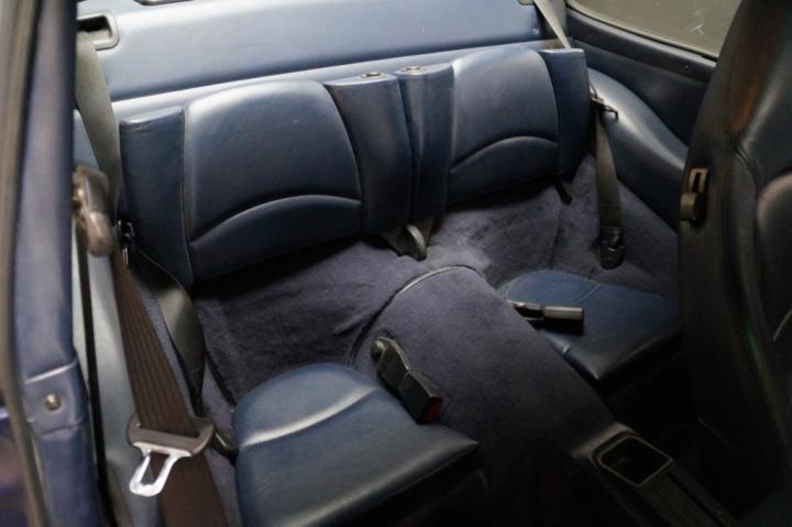 Finished in the original “Irish Blau” colour, the car now sports a matte clear coat, giving it a modern yet classic appeal. The exterior modifications are complemented by a high-performance “KW V3” suspension system, ensuring that it handles as well as it looks. The stainless-steel mufflers from “Car Graphic” enhance the auditory experience without compromising the original headers.