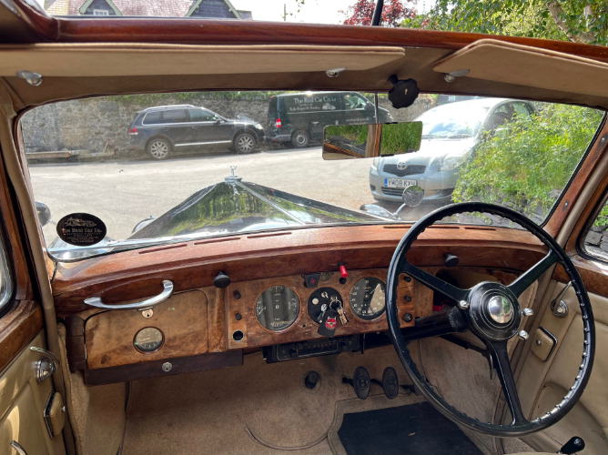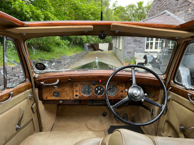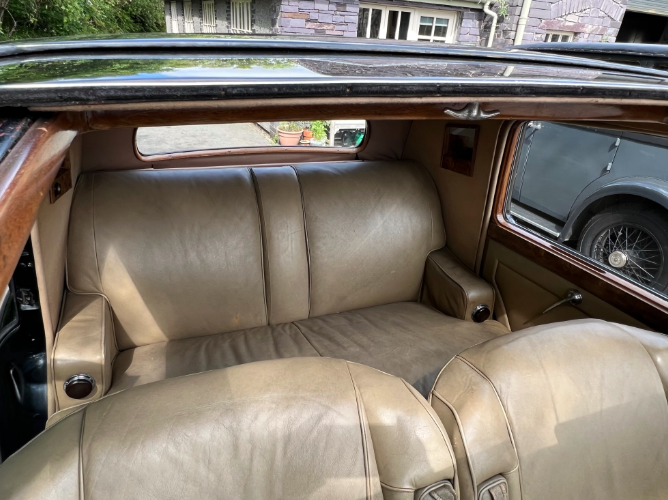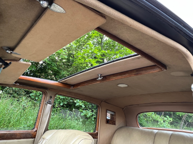 A good, sound and very useable example of an early MKVI finished in black with beige leather interior which – being an early car – is of the plain, non-pleated design, with two armrests to each front seat. This, together with inertia reel seatbelts to the front and a nicely-working sliding sunroof make the inside a very nice place to be! We have a file of maintenance and repair invoices totalling about £39,000 since the 1980s, and the car has covered about 2,300 miles in the hands of the last owner since he bought it from us in 2016. A comprehensive service was carried out in 2022 costing £2,600, since when just 100 miles have been covered. We feel that the car would benefit from a certain amount of cleaning and cosmetic improvement, but this is by no means urgent, and more importantly, the chassis, underbody and coachwork are all reassuringly sound. Running and driving nicely, equipped with a well-suited set of Avon Turbosteel tyres, correct headlights, centre spotlight, etc, and offered prepared and newly MoT tested.