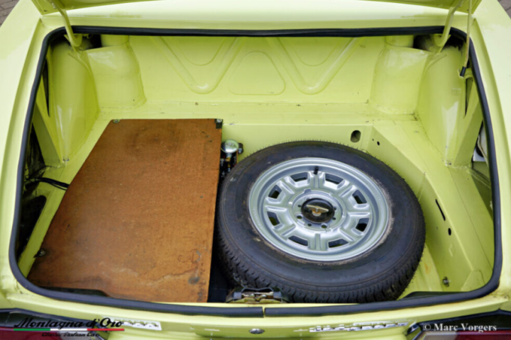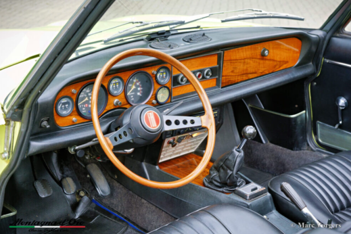 Het interieur toont de overgang naar de jaren zeventig met een van de laatste met hout gefineerde dashboards en sportieve “blacked out” chromen sierdelen (randen van de klokken/ meters en het middendeel van het stuur in matzwart) om hinderlijke schitteringen en verblinding door (zon)licht tegen te gaan.